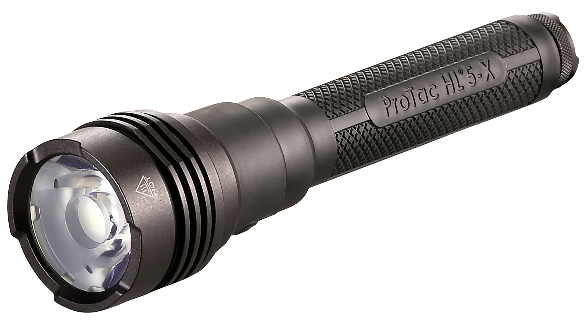 The protac hl 5-x tactical light has an output from the led that results in one of the brightest tactical lights available.The ten-tap programming allows you to choose one of three modes of operation: 1- high/strobe/low, 2- high only, 3- low/medium/high.It is constructed of aluminum with an anodized finish, sure grip rubber sleeve, anti-roll head and head mounted push-button switch.Includes four batteries and a wrist lanyard.