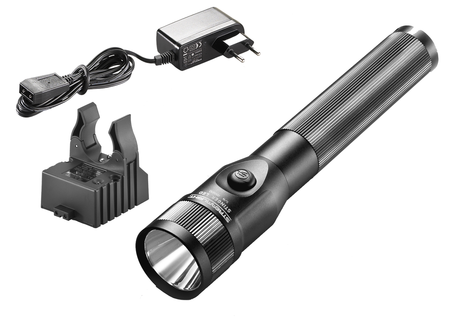The stinger led delivers the optimal balance of performance with the longest run time in the stinger family.It is machined from aluminum with non-slip rubberized comfort grip, anti-roll rubber ring and unbreakable polycarbonate lens with scratch-resistant coating.The c4 led technology, is shock-proof, weather resistant and features a deep-dish parabolic reflector which produces a concentrated beam with optimum peripheral illumination.It features four operating modes-high, medium, low and strobe.The stinger led also has multi-function push-button switch and uses 3-cell, 3.6 volt ni-mh sub-c, rechargeable battery.Included is a snap-in charger holder, 120v ac/12v dc smart charger and anti-roll rubber ring.