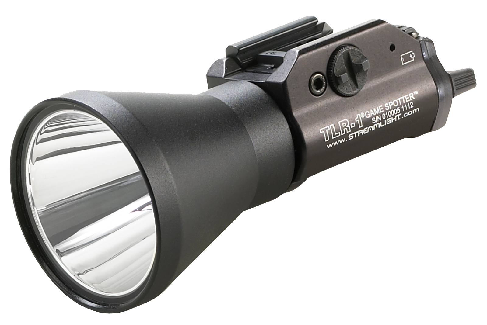 The tlr-1 game spotter is a long-gun/long-range light with a green led that preserves night vision and won't spook game.It is constructed from aluminum with an anodized finish, unbreakable polycarbonate lens with scratch-resistant coating, green c4 led bulb and ambidextrous on/off switch.It has one handed snap-on/tighten interface, deep-dish parabolic reflector that produces a long range targeting beam, and securely fits a broad range of weapons.The tlr-1 game spotter mounts directly to all picatinny rails and weapons with glock-style rails.Included are two cr123a lithium batteries and locating keys for glock-style, picatinny, beretta 90two, s&w 99 and s&w tsw.