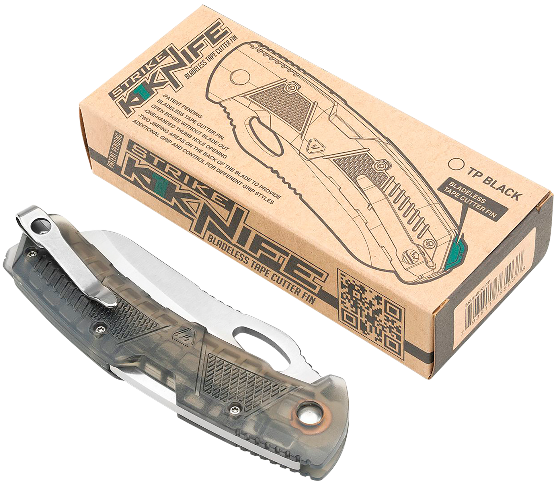 The strike k1 knife is an everyday knife made for everyday use.The thumb hole in the blade makes it easy to open one-handed.Two ujimping areas on the back of the blade to provide additional grip and control for different grip styles.This ambidextrous knife features a reversible pocket clip for your preferred hand which orientates the knife at a tip-up position in your pocket.Handles made of high-strength impact resistant custom blended si polymer extreme material, the handles give you enhanced geometry with anti-slip textures.The handle style offers a hand-filling grip and excellent tactile orientation, while still making sure the knife is slim and easy to carry everyday.Keeping with the theme of an everyday carry (edc) knife, the strike k1 knife incorporates a patented bladeless tape cutter fin.
