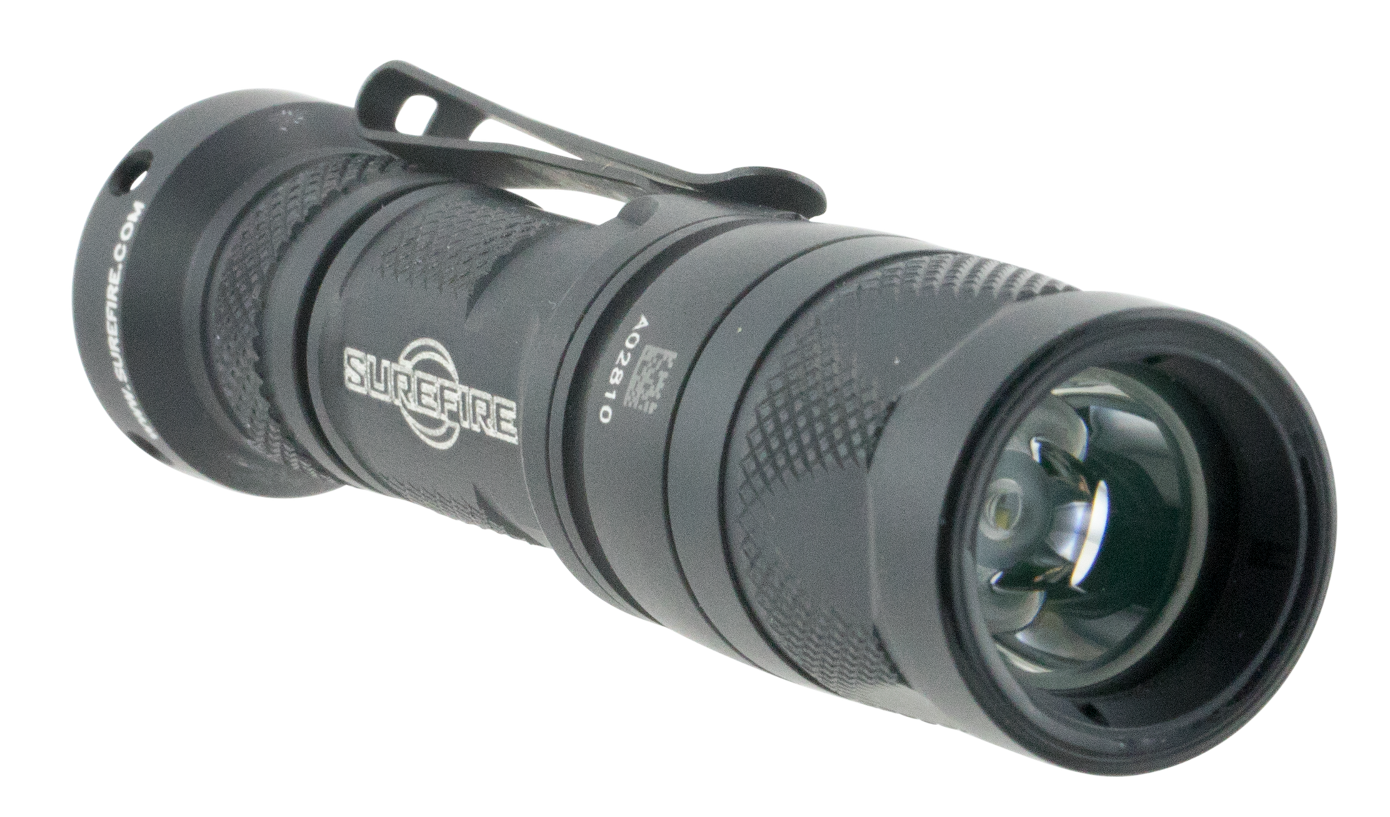 A classic surefire design, the dual-output aviator flashlight features a primary white led and secondary red colored led in one sealed head, both focused into a useful beam with ample reach and surround light by our proprietary total internal reflection (tir) lens.Pull and twist aviators self-locking selector ring to set it to white or colored light, no filter required; a system-disable setting prevents accidental activation.Show your discriminating attitude at any altitude.The red led improves contrast and aids in reading red-light-readable topographic maps.Includes battery and pocket clip.