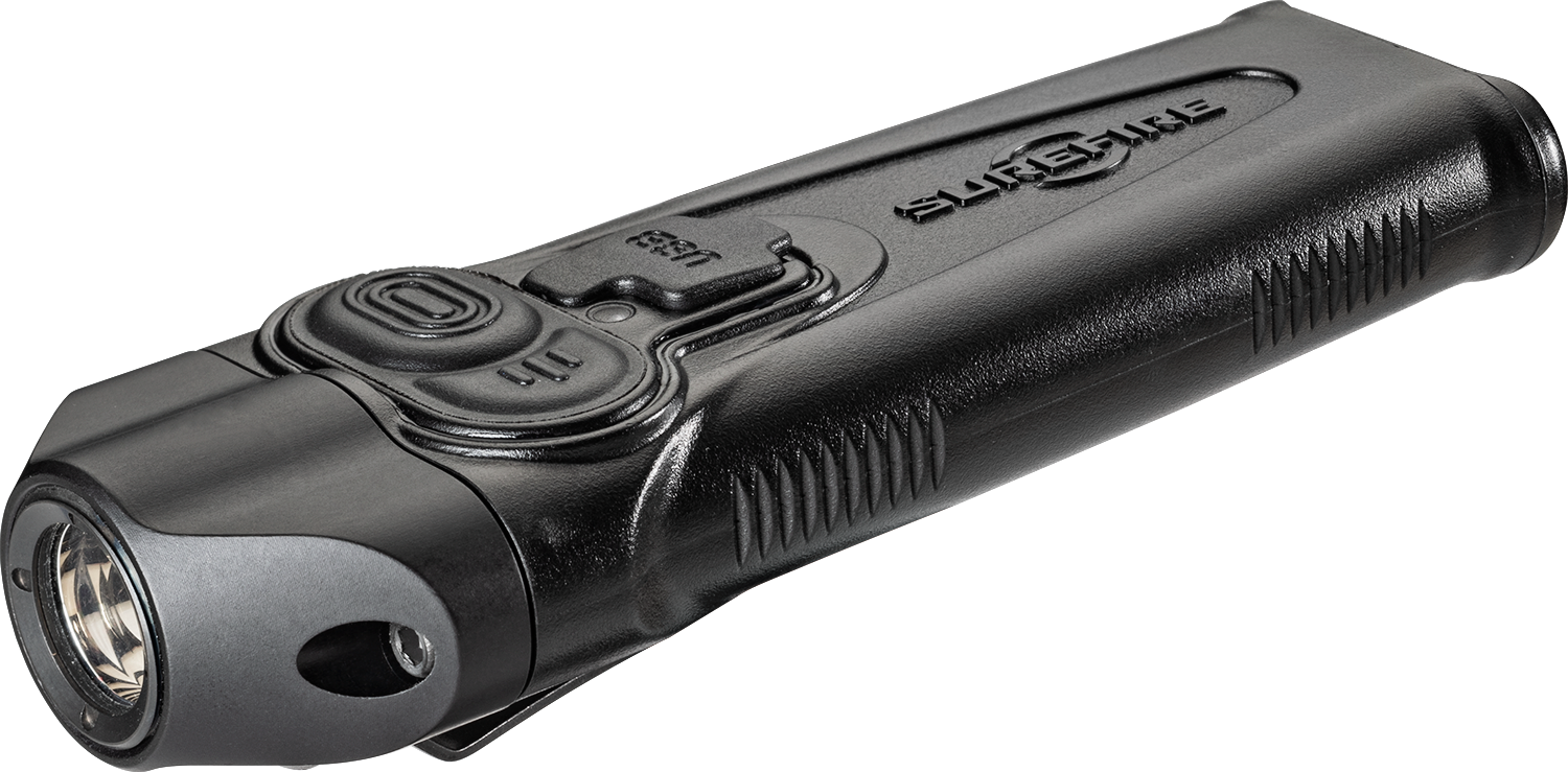The surefire stiletto may only measure 4.5" long, but it packs a heavyweight punch.Quickly switch between 650 lumens, 250 lumens or 5 lumens of smooth, well-rounded maxvision beam illumination, which projects a wide flood beam that's ideal for situational awareness; its programmable from low to high or vice versa.The stilettos rugged polymer body features a tail-mounted tactical switch that instantly activates its high output or strobe feature in no time flat.Its long-lasting lithium polymer battery can be recharged with the included micro-usb cable charger, and its heavy-duty pocket clip will keep it accessible and secured.