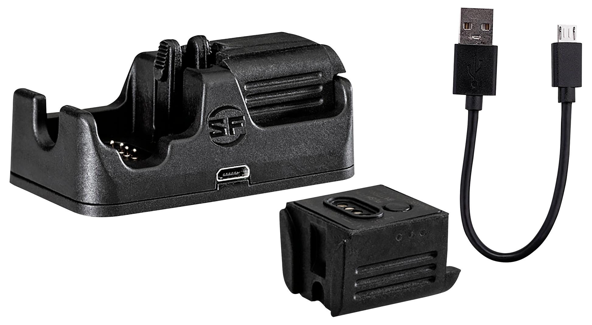 Surefire dual-charge cradle with b12 battery kit.Plug the cradle into an ac or dc source using the included micro-usb to usb type-a cord.Charges two batteries in three hours.Includes b12 battery for the surefire xsc series weaponlight.