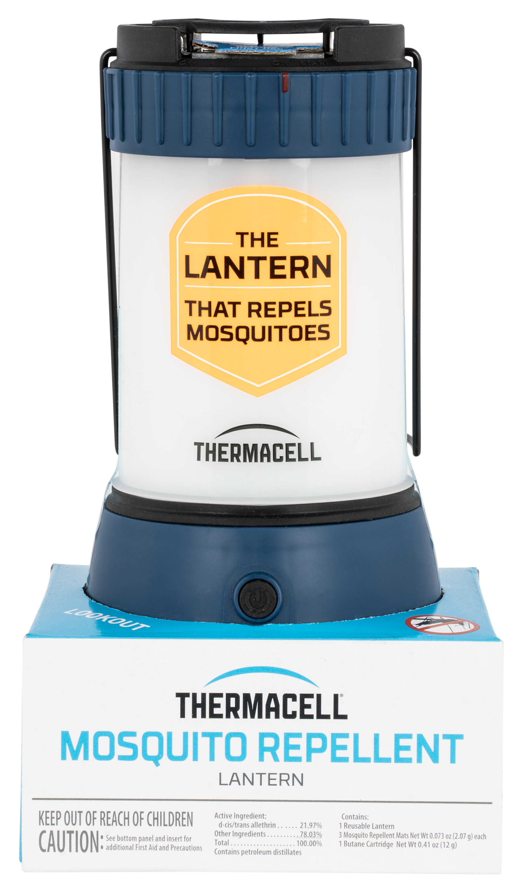 The thermacell scout mosquito repellent camp lantern effectively repels mosquitoes by creating a 15 foot zone of protection.Its smaller size, bright 220-lumen light, hanging clip and outdoor design make it perfect for camping, hunting, gardening, around the backyard and more.Features lantern and repellent operate independently or together, led lantern features four light settings, 220 lumens and runtime of 40 hours, lantern features a built in hanging clip, scent-free and deet-free.Package contains: lantern and 12 hours of refills, 1 max life 12-hour repellent mat and 1 fuel cartridge.Requires 4 aa-batteries.