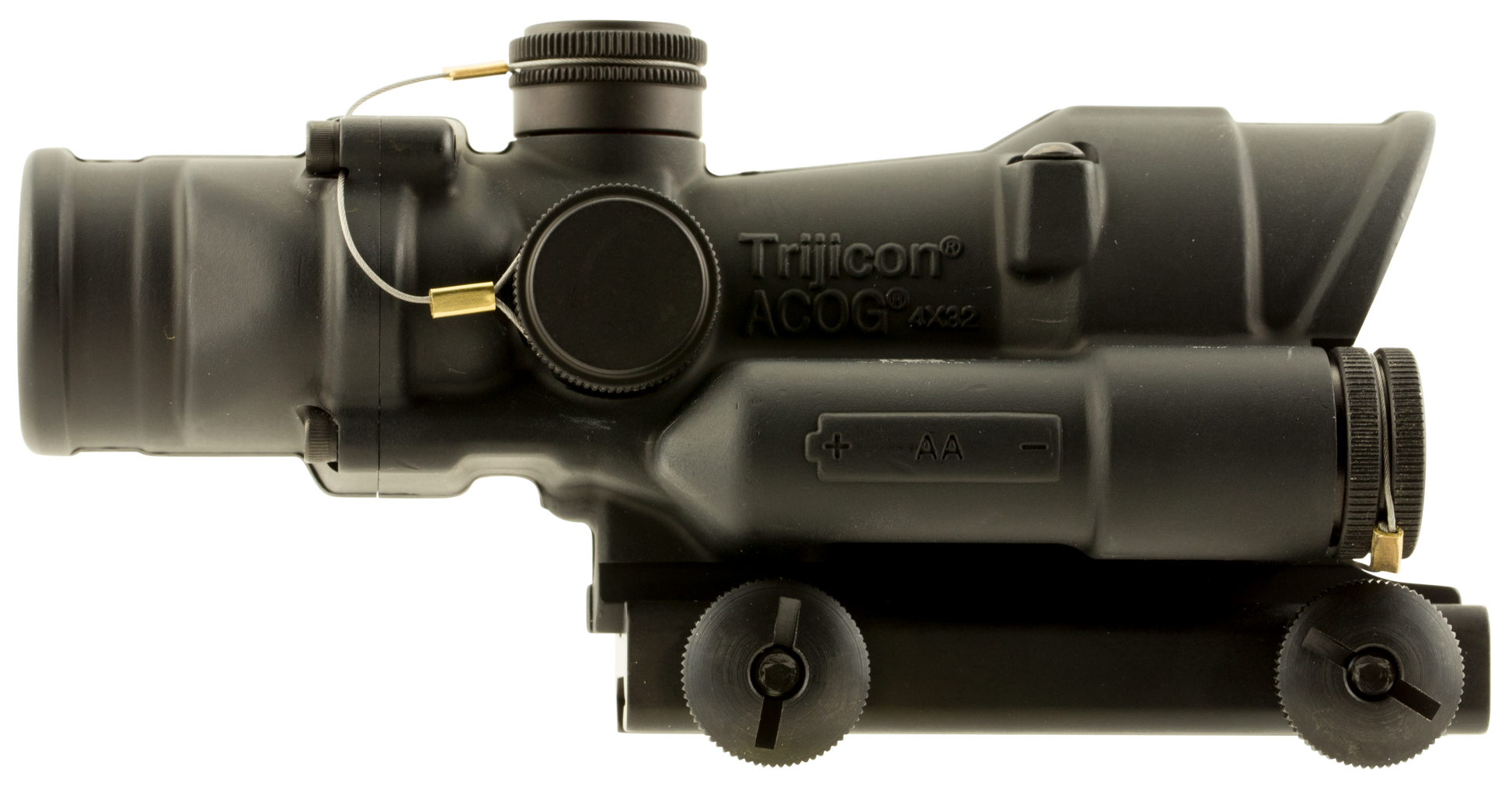 Trijicon's acog is a fixed power, compact riflescope with an illuminated reticle pattern for use in bright to low/no light with legendary durability and reliability.Featuring forged 7075-t6 aircraft-aluminum-alloy housing, multi-coated lenses, fog/waterproof and shock-resistant, proven to withstand recoil from 22lr up to 50 bmg, and easily passes u.S.Military drop test requirements.Includes a thumbscrew flattop adaptor, aa battery, lenspen, lanyard assembly for adjuster caps and battery cap, trijicon logo sticker, acog manual and warranty card.