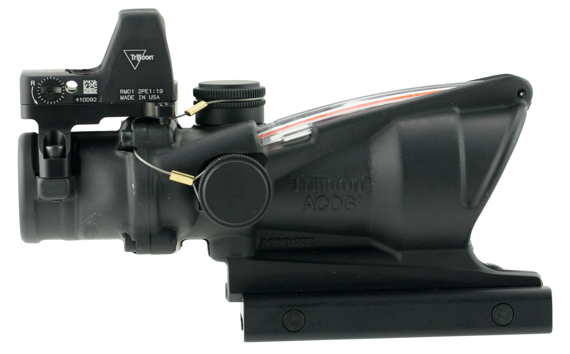 Adapted from the battlefields, us forces have begun improving this proven trijicon acog scope by adding a small red dot sight on top for close encounter missions.Trijicon has now created a similar model for the public, the ta31-c-100550.The main trijicon scope provides an illuminated reticle using fiber optics and tritium for bright aiming point in any light condition.The ranging reticle allows for bullet drop compensation out to 600 meters without any manual adjustments.A trijicon rmr type 2 sits on top with a 3.25 moa aiming dot.Includes 3.25 moa rmr type 2, thumbscrew flattop adapter, lenspen, lanyard assembly for adjuster caps, trijicon logo sticker, acog manual and warranty card.