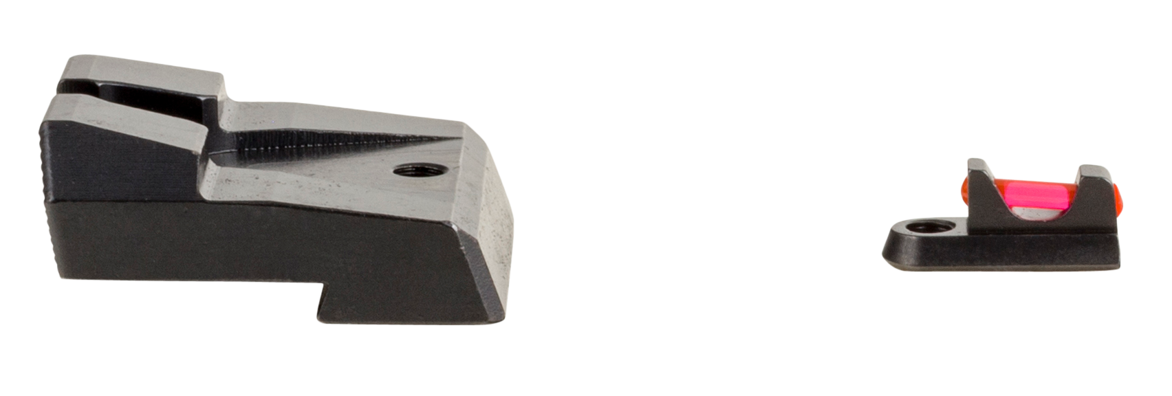 Trijicon fiber sights are purposely engineered to bring the absolute brightest aiming point while retaining strength and maintaining a refined sight picture.A bright front post fiber combined with a subdued rear sight promotes acquisition of front sight and target.Using leading edge fiber technology and trijicon's legendary rugged metal construction, this fiber sight maximizes retention and durability.Rounded edges of rear sight reduce snag points for improved comfort while carrying.Trijicon fiber sights come from the factory with a.060" red fiber pre-installed on the front sight, and an extra red and green fiber replacement in the package.Whether carrying or competing, these bright, thin sights create the perfect aiming point for fast, accurate rounds on target.