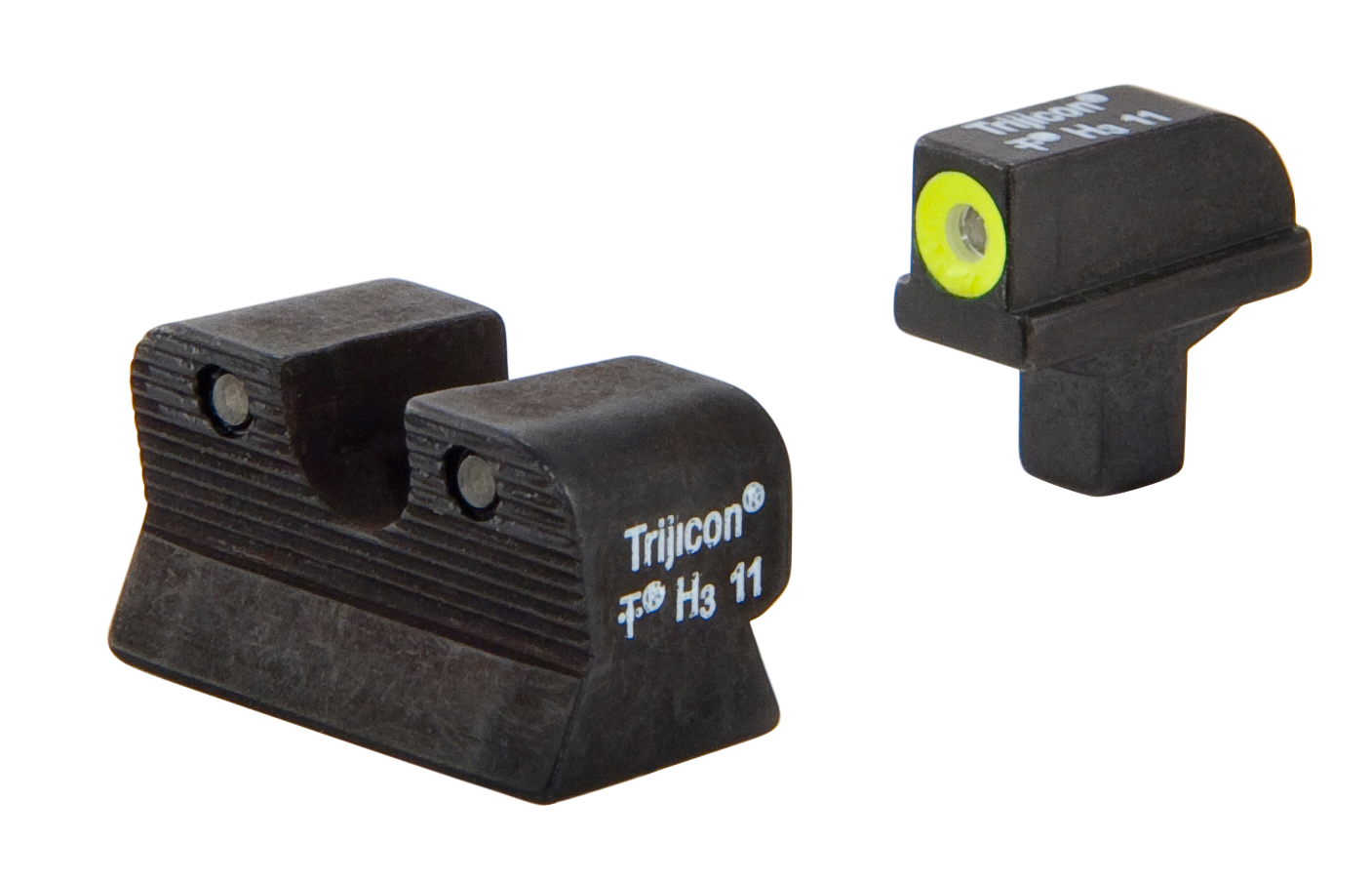 The hd night sights were specifically created to address the needs of tactical shooters.They are a self-luminous, three-dot night sight set that features a highly visible photoluminescent paint outline to quicken sight acquisition, along with a "u" notch rear sight that's angled and serrated to reduce glare and aid in front-sight focus.The tritium gas lamps are contained within protective aluminum cylinders and have additional silicone rubber cushioning.Each trijicon tritium lamp is capped with a sapphire jewel that helps evenly distribute the light and also acts as an additional layer of protection from puncture and cleaning solvents.