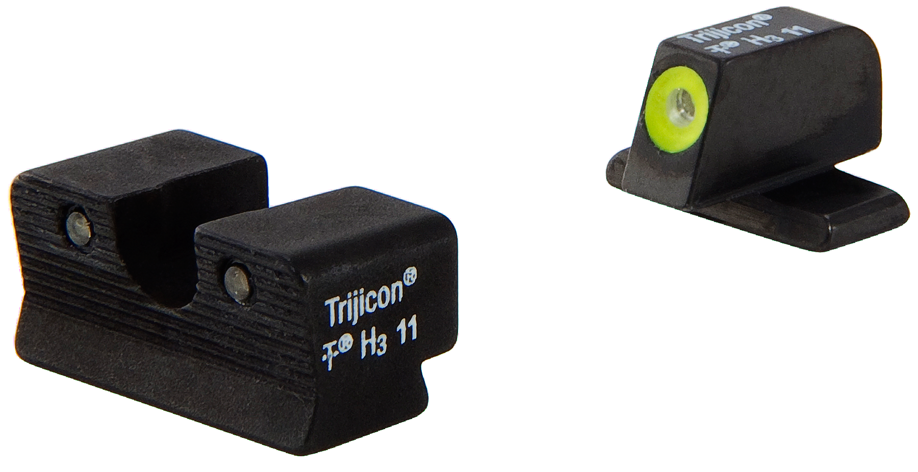 The hd night sights were specifically created to address the needs of tactical shooters.They are a self-luminous, three-dot night sight set that features a highly visible photoluminescent paint outline to quicken sight acquisition, along with a "u" notch rear sight that's angled and serrated to reduce glare and aid in front-sight focus.The tritium gas lamps are contained within protective aluminum cylinders and have additional silicone rubber cushioning.Each trijicon tritium lamp is capped with a sapphire jewel that helps evenly distribute the light and also acts as an additional layer of protection from puncture and cleaning solvents.