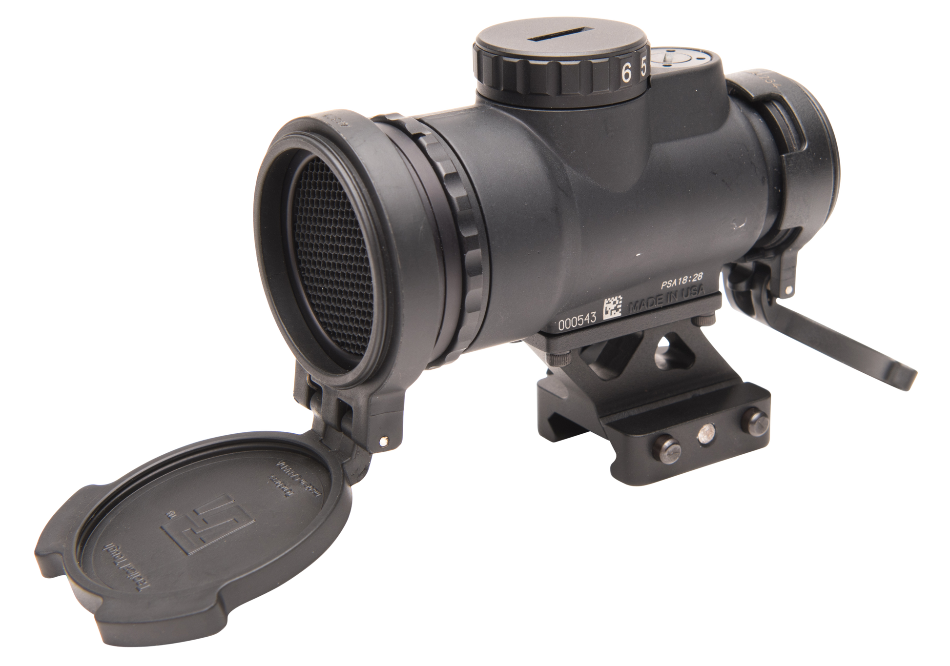 The trijicon miniature rifle optic (mro) is a reflex-style, sealed sight intended for use on rifles, carbines, and shotguns to provide fast target acquisition.It is designed to be used with both eyes open, providing the operator with maximum situational awareness.Advanced lens coatings and electronics produce a crisp red dot.The brightness control dial on the mro is specifically designed for ambidextrous usage.The mro patrol includes an ocular lens cover to protect glass from damage and to reduce glare and reflections as well as an objective cover and ard, as well as a mil-spec rated 1/3 co-witness quick release mount with return to zero accuracy.Includes ocular cap, obj cap ard, 1/3 co-witness qr mount, sticker, lens cloth and mount guide.