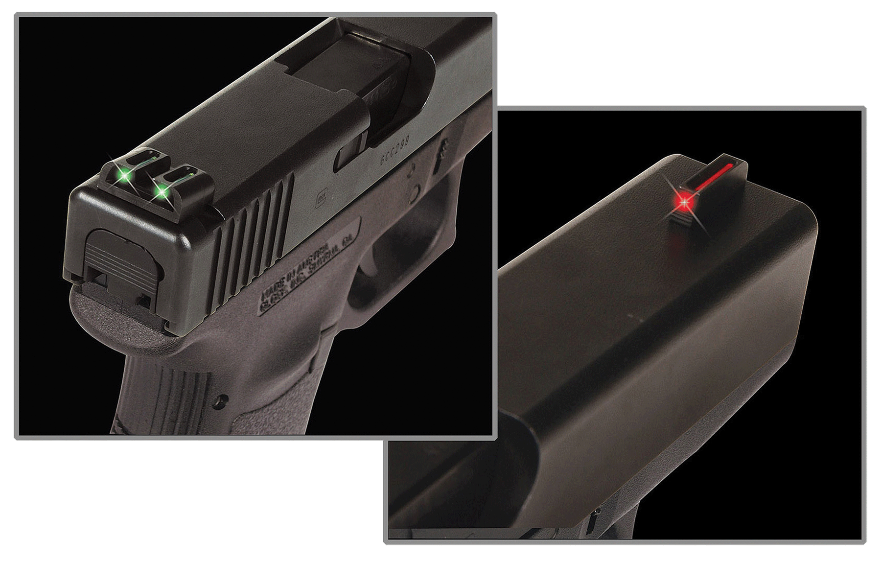 Truglo's fiber optic sight set uses traditional fiber optics for bright aiming points, even in low-light conditions, and the tri-dot aiming system of contrasting front and rear colors.It utilizes cnc-machined steel construction, concealing the fibers so they cannot be seen by your target, and have truglo's fortress finish for a permanent protective coating and maximum protection.Brite-site fiber optic sight sets have a snag-resistant design and fit standard holsters.This model is compatible with glock 20,21,25,29,30,31 32,37,40,41 (excluding mos models).