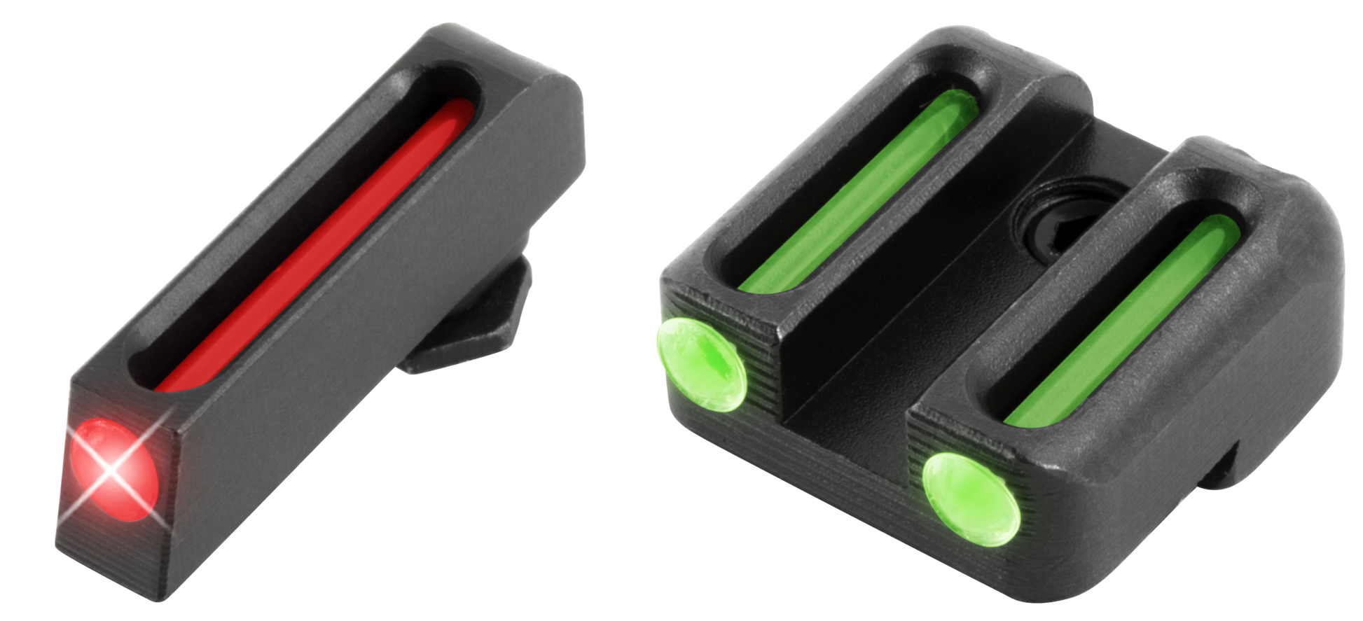 Truglo's fiber optic sight set uses traditional fiber optics for bright aiming points, even in low-light conditions, and the tri-dot aiming system of contrasting front and rear colors.It utilizes cnc-machined steel construction, concealing the fibers so they cannot be seen by your target, and have truglo's fortress finish for a permanent protective coating and maximum protection.Brite-site fiber optic sight sets have a snag-resistant design and fit standard holsters.This model is compatible with glock 42/43 models.
