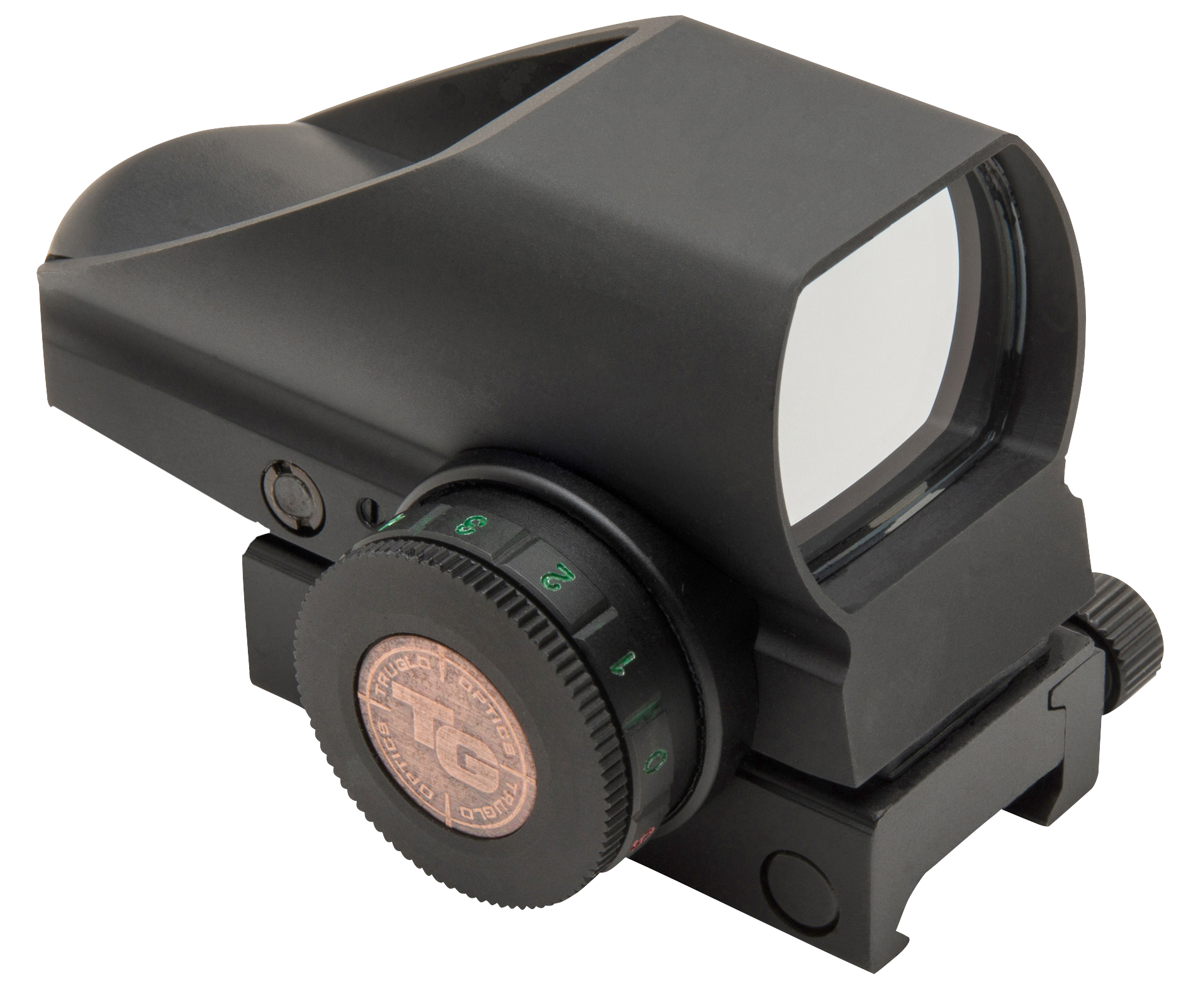 Truglo's trubrite dual (red/green) open dot sight has two choices of reticle color for contrast against any target or background.An unlimited eye relief gives a wide field of view for ultra fast target acquisition.The target side of the 34mm lens is coated for anti-reflection and is parallax free from 30 yards.It has a integrated weaver-style mounting system and (3v-cr2032) batteries are included.