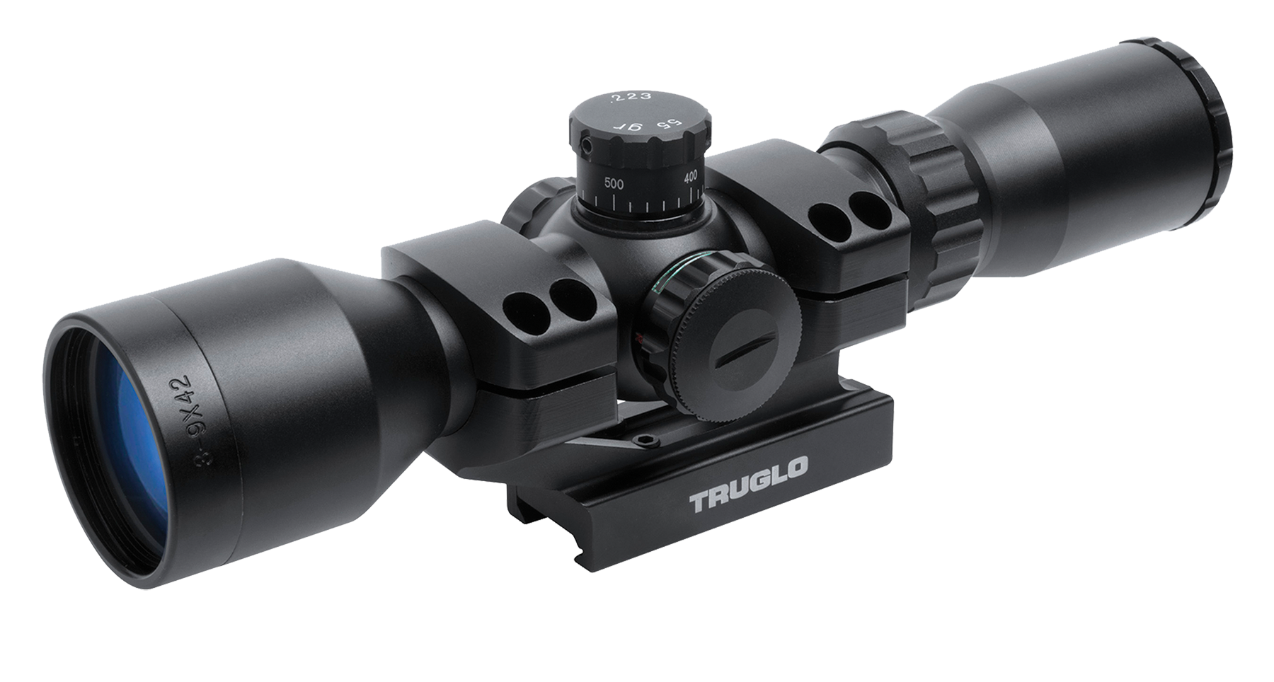 Trubrite 30 series offers the perfect combination of clarity, precision and speed.It provides a bright image and extremely wide field of view.Shooters can utilize an extremely fast sight picture and even take the shot with both eyes open.This model has an illuminated duplex mil-dot reticle with 3-9x magnification and 44mm objective lens.Includes two pre-calibrated bdc turrets in calibers.223 (55 grain) and.308 (168 grain) and a reversible, offset 30mm scope mount.