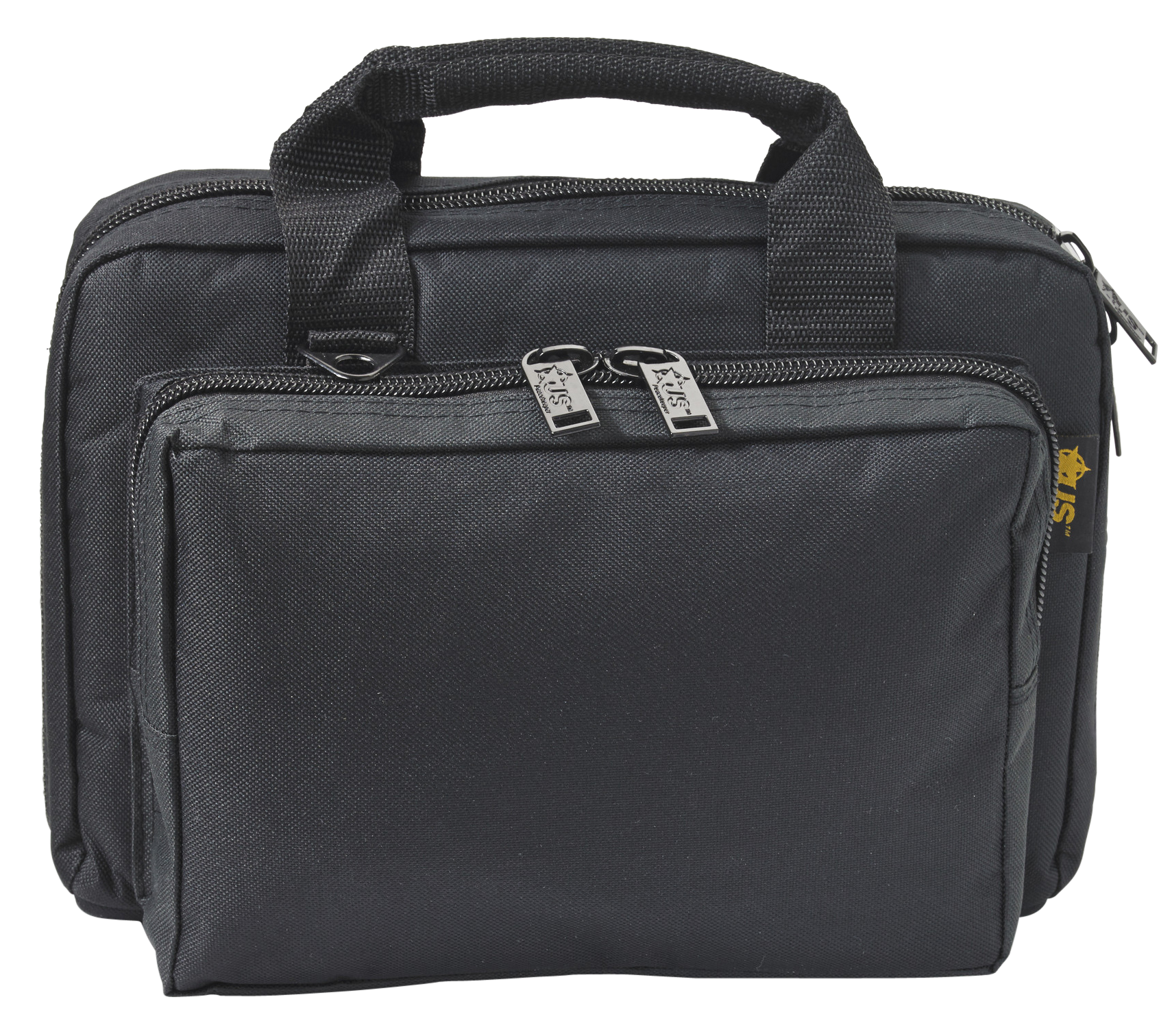 The us peacekeeper mini range bag is a versatile piece of essential equipment to transport your handguns and other necessities to the range.Ideal for carrying two handguns, compact earmuffs, eye protection and added ammunition.It has a 10" x 7" x 2" front pocket; two interior tricot-lined padded side pockets with hook and look tab to secure guns, eight magazine pockets.Made of rugged, water-resistant 600d polyester, it has heavy duty, self-repairing double zippers and wrap around handles.This model is black.Includes lifetime warranty, 8 pistol magazine pockets, & 2 gun pockets with tabs to secure handguns.