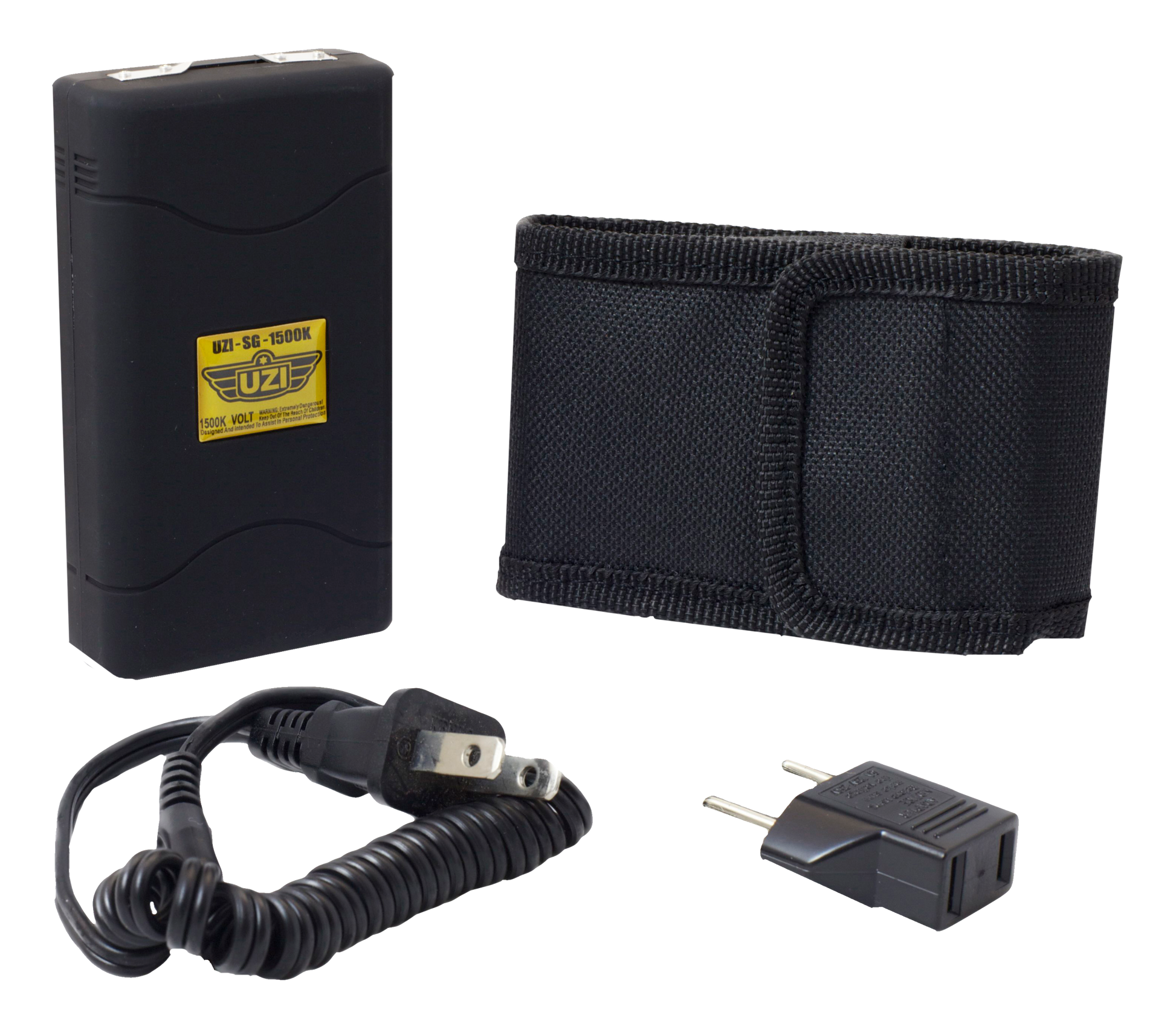 The uzi 1.5-million volt rechargeable stun device delivers a powerful shock to subdue attackers.The sound produced by the electrical current alone is enough to deter a potential threat and the sleek design is both attractive and convenient for easy carry.Features a safety switch and built in rechargeable battery.