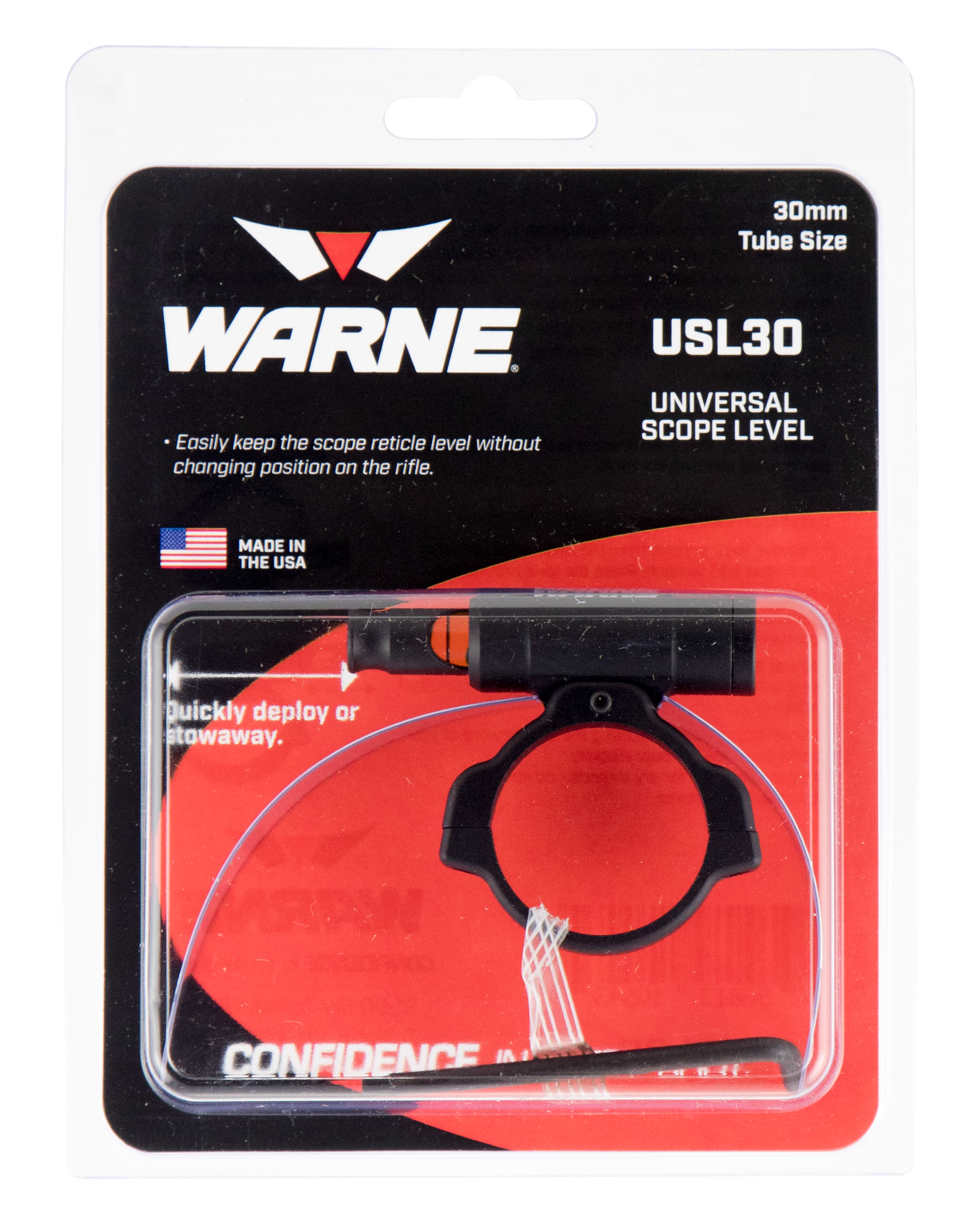 Warnes skyline universal scope level allows shooters to easily keep the reticle level without changing their position on the rifle.Whether moving through thick brush or storing your rifle in a case or scabbard, our patent pending design allows the shooter to deploy or stow the indicator with a simple push or pull.Easily attaches to your scope tube for right or left hand configurations.