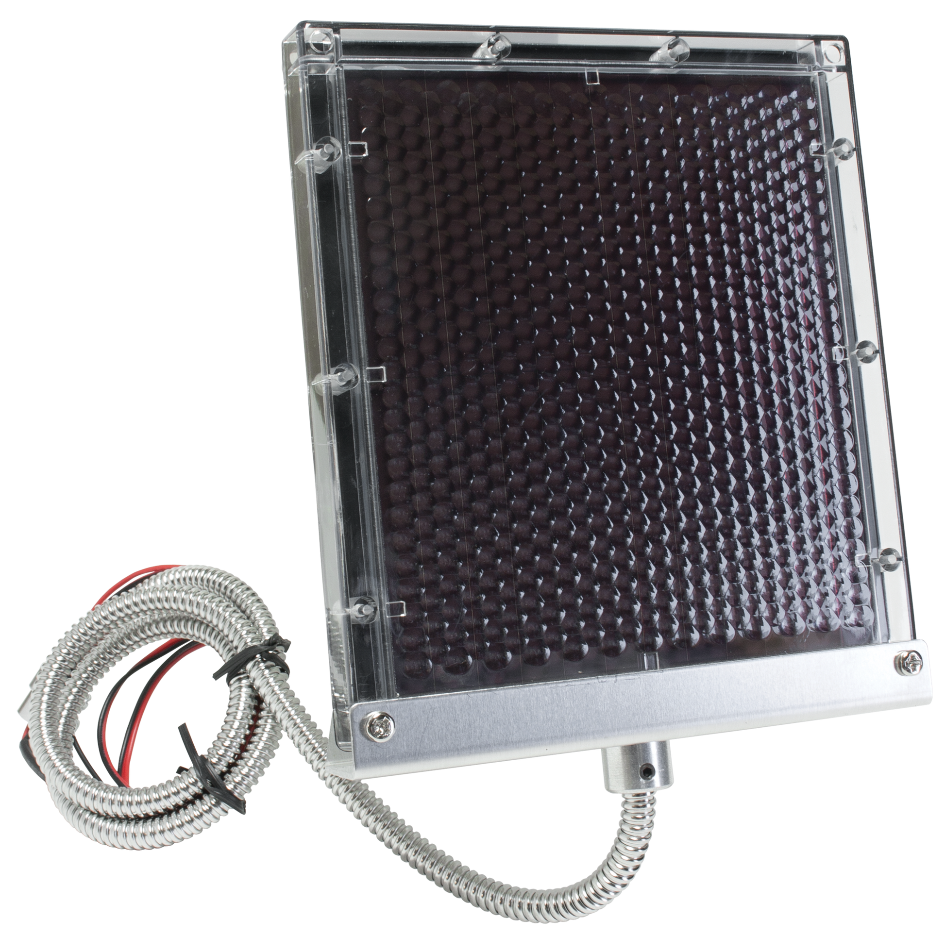 The 12v edrenaline solar panel provides worry-free power to your deer feeder all season long.The heavy-duty, high-efficiency solar battery charger keeps batteries charged with advanced amorphous silicon solar technology.Easily clips in place to attach to your power control unit and adjusts to the best angle for optimum solar power.Compatible with 12v power control units.