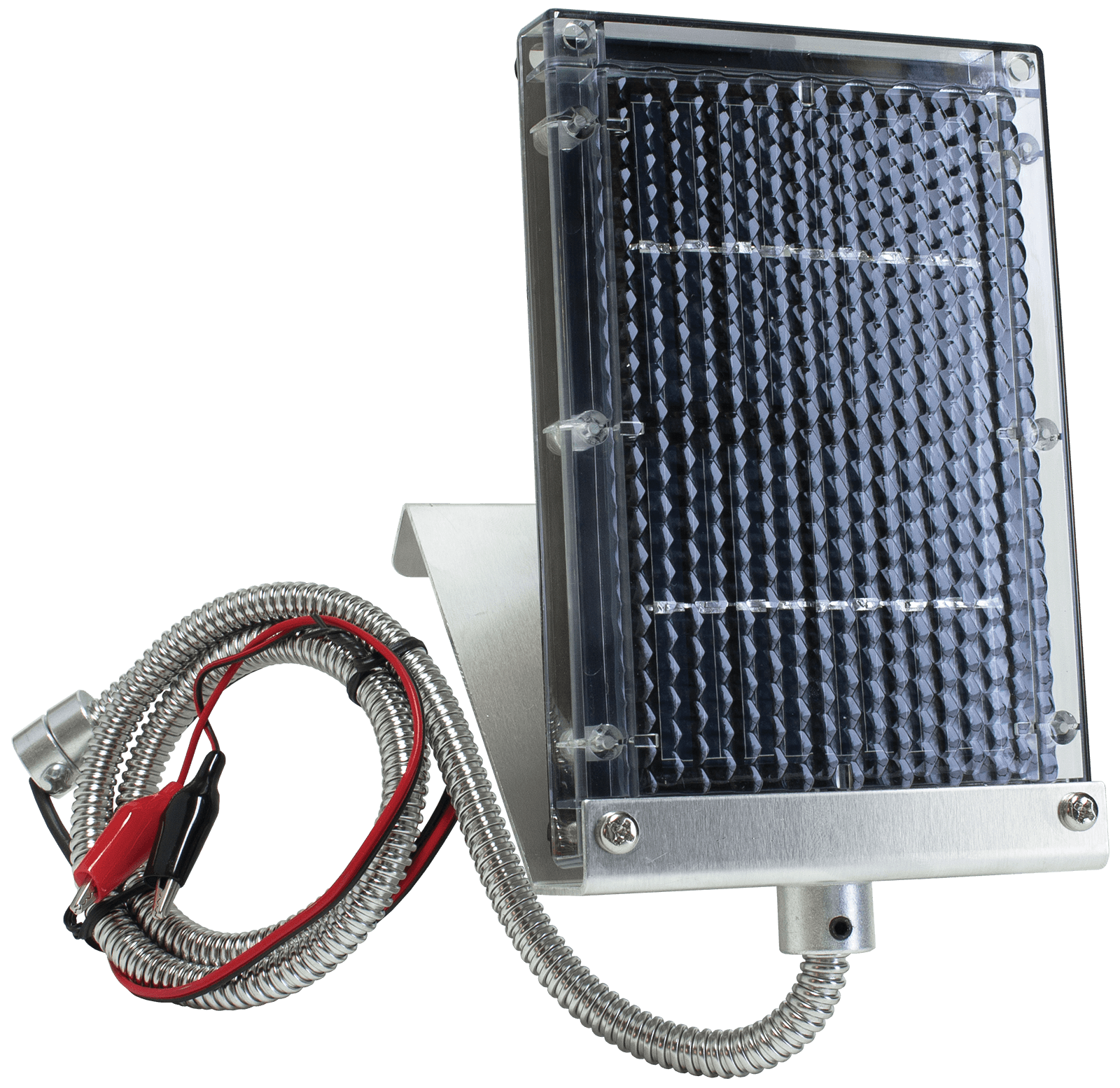 The 12v edrenaline solar panel provides worry-free power to your deer feeder all season long.The heavy-duty, high-efficiency solar battery charger keeps batteries charged with advanced amorphous silicon solar technology.Easily clips in place to attach to your power control unit and adjusts to the best angle for optimum solar power.Compatible with 12v power control units.