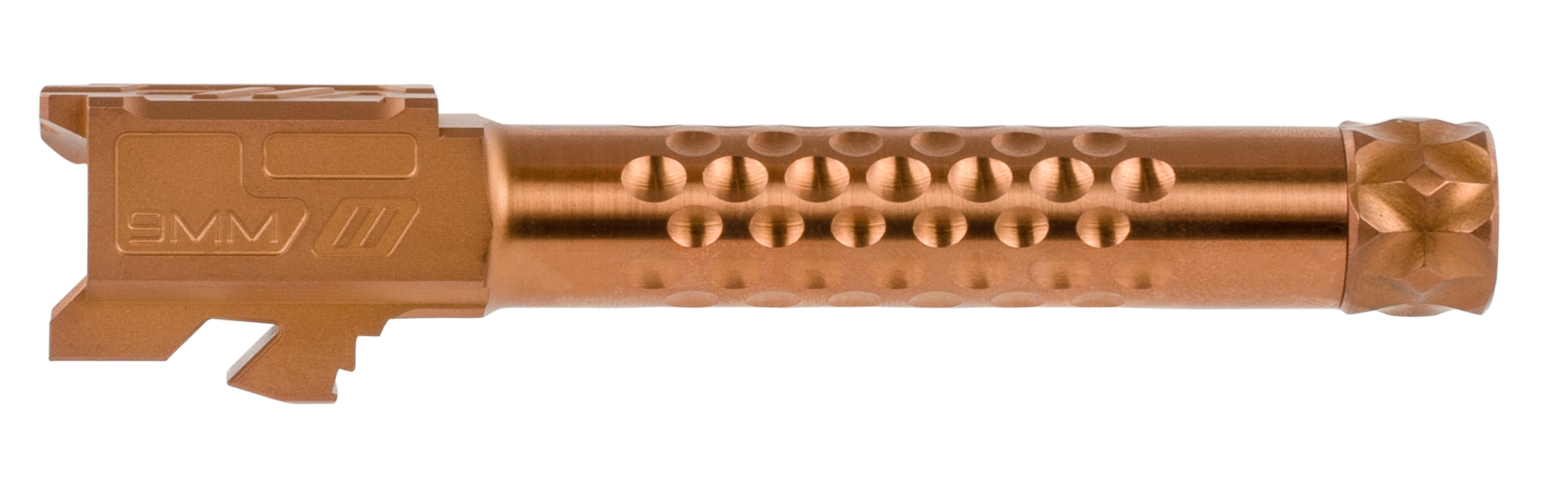 Zev technologies optimized match barrels have been redesigned for improved performance compatibility.Enhanced features include a recessed target crown, a new match chamber, and a stylized barrel hood with caliber and model engravings and a loaded chamber indicator.Zevs proprietary broach cut 1 in 14 left hand twist rifling was developed to create the most accurate glock aftermarket barrel available, and testing confirms a significant increase in accuracy over factory barrels in all standard bullet weights.Manufactured from 416r stainless steel which is an ideal material for making match grade barrels because the material allows for the precise cutting of chambers and rifling which results in a more accurate barrel.